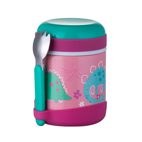 Barattolo per alimenti isolato in acciaio inossidabile con forchetta per bambini contenitori per alimenti sottovuoto con motivo animale portatile per bambini